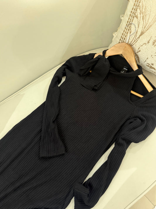 SHEIN RIBBED OFF SHOULDER BLACK DRESS