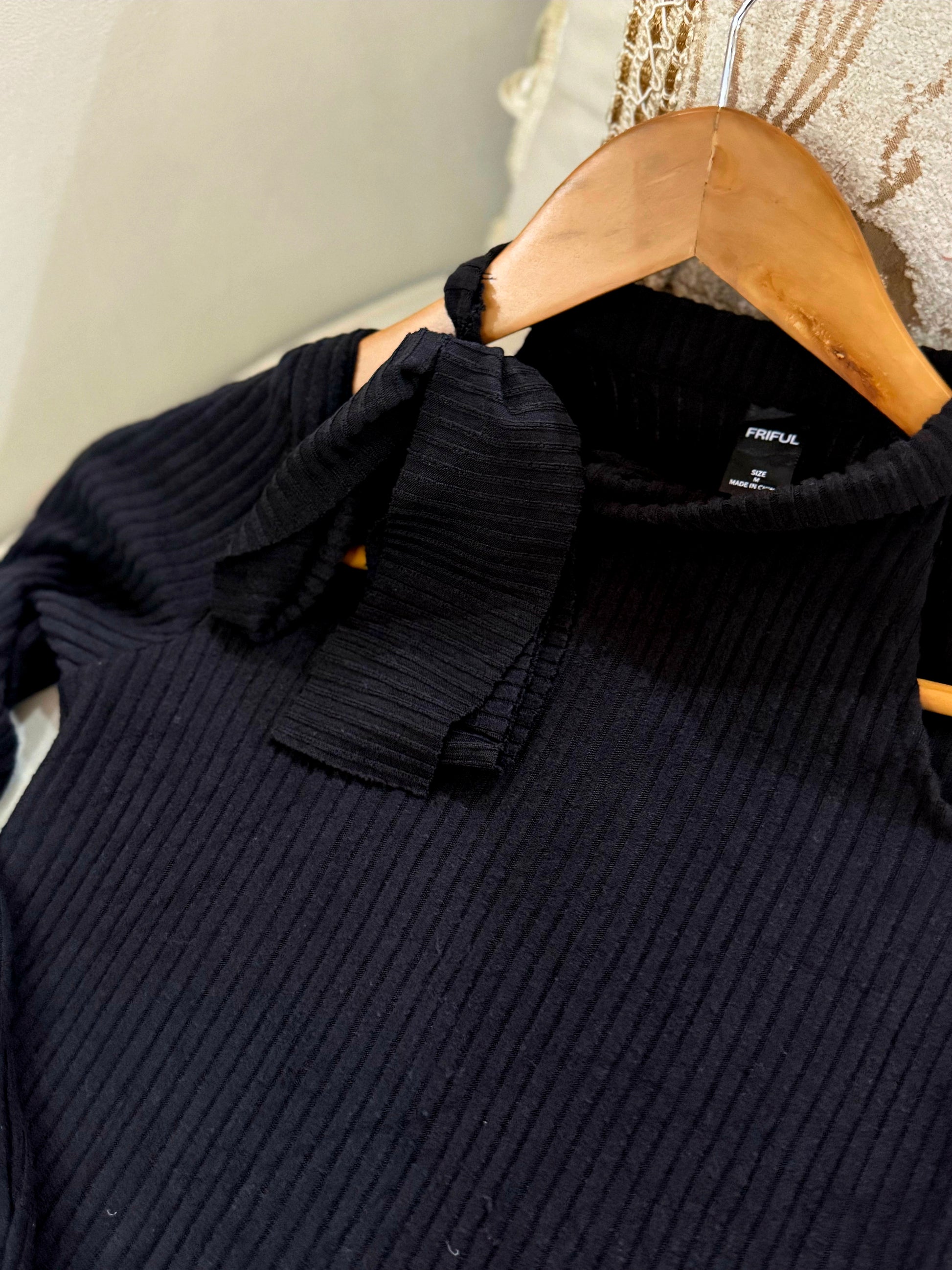 SHEIN RIBBED OFF SHOULDER BLACK DRESS